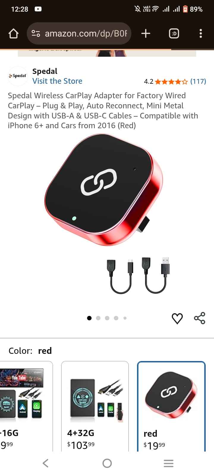 | 1 | 1 | USA | Spedal Wireless CarPlay Adapter | 1438184 |