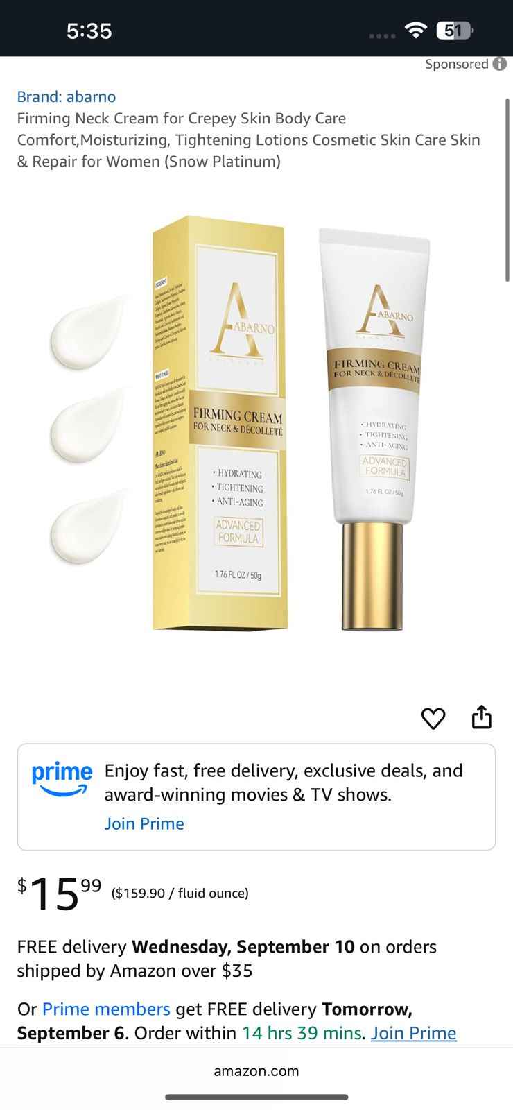 | 1 | 1 | USA | abarno Firming Neck Cream (Snow Platinum) | 1295408 |