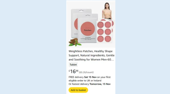 | 5 | 5 | UK | weightless patches healthy shape support 60 | 1372959 |