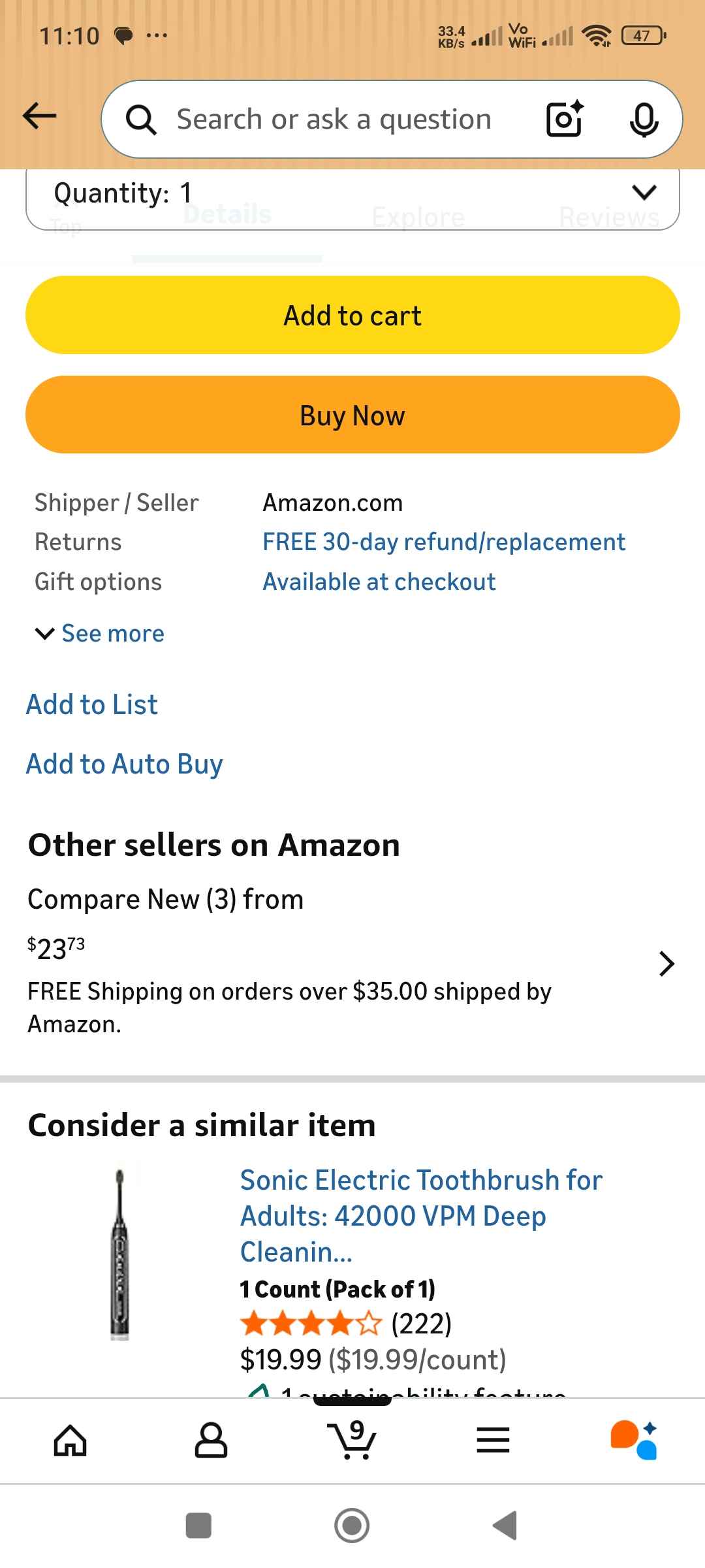 | 5 | 5 | USA | electric toothbrush(Color: Black) | 1454323 |